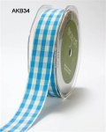 View Large Image | May Arts - 7/8" Woven Ivory Checkered - Blue Fiber Content: 100% Polyester