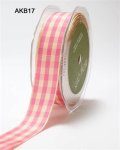View Large Image | May Arts - 7/8" Woven Ivory Checkered - Pink Fiber Content: 100% Polyester
